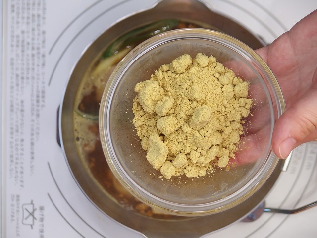 煮立ったままの状態で加えてしまうとトロミが均一に仕上がりません。
