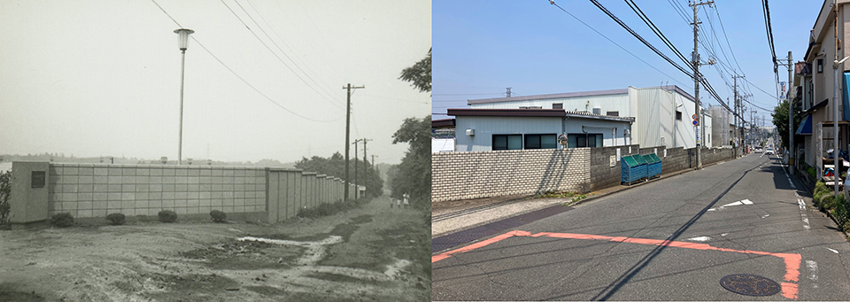 【左:昭和40年代当時(所沢工場設立中)/右:現在の風景】