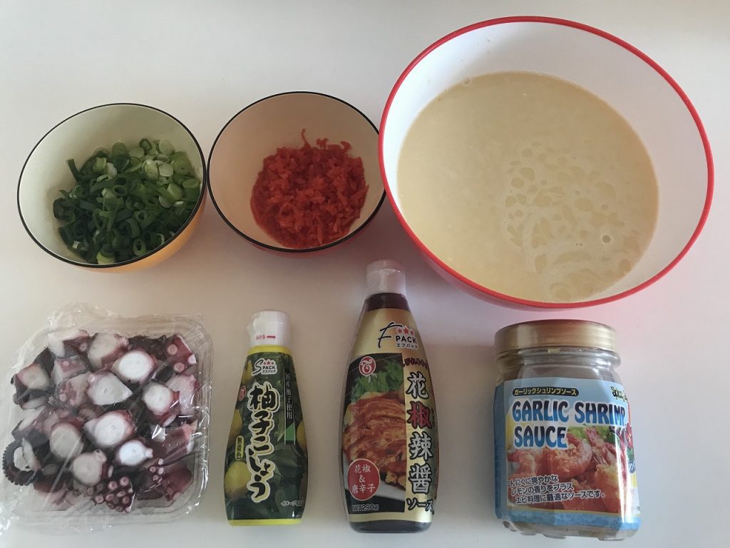 「花椒辣醤ソース」を使ったたこ焼きです。