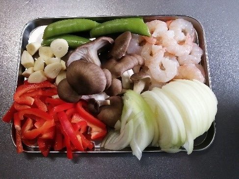 材料は、エビとキノコと、たくさんのお野菜たち。